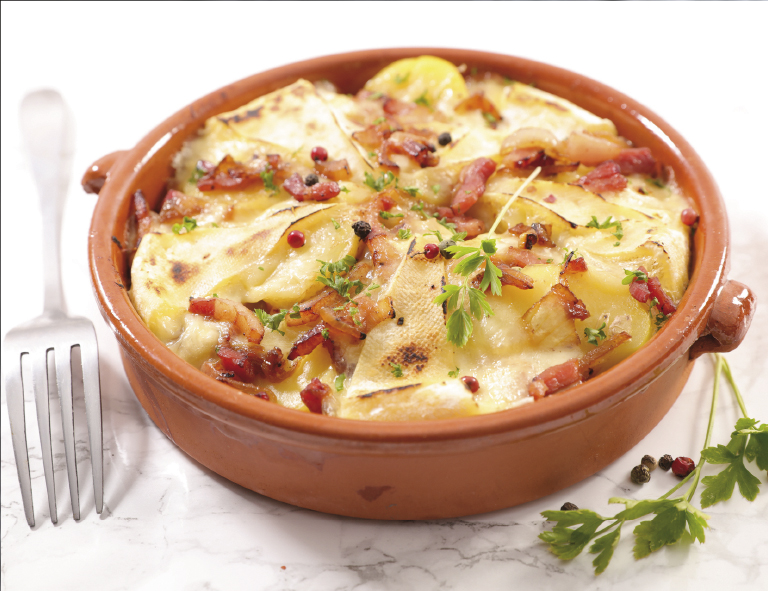 • Place the raclette slices on top and bake until the cheese is melted and lightly browned. It is ready!
